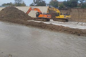 В рамках реализации мероприятий по объекту: «Защита территории Крымского района Краснодарского края от негативного воздействия вод рек Адагум, Неберджай, Баканка» подрядной организацией ведутся работы по устройству железобетонного лотка в русле реки Адагум в районе мостового перехода через реку Адагум по ул. Синева г. Крымск.