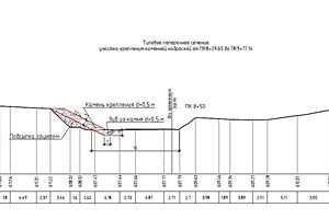 Каменная наброска опирается на каменный зуб, предохраняющий крепление от подмыва и оползания на протяжении 100 м. Каменный зуб принимается толщиной 1,0 м, шириной по низу 1,61 м исходя из объема, рассчитанного на заполнение воронки размыва.